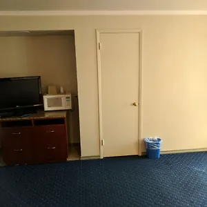 A microwave and a fridge are standard in the rooms at La Hacienda Motel.